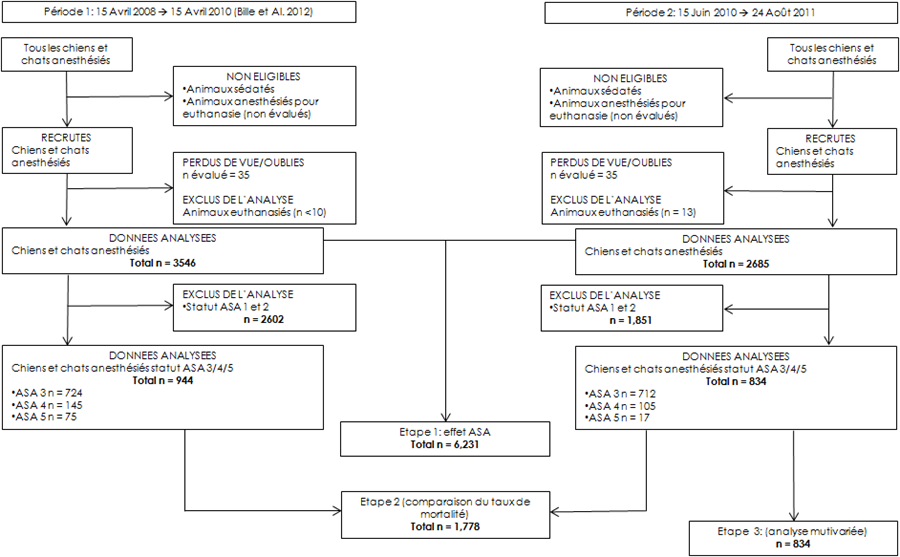 Mortalité statuts ASA 1 et 2 faible → animaux exclus.