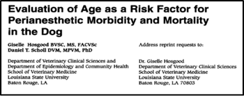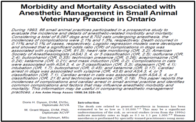 - Quel est le taux de mortalité anesthésique chez le chien et le chat?
