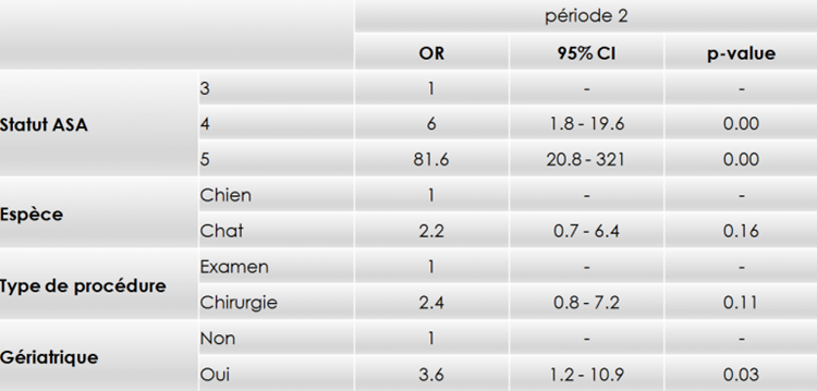 Modèle de régression logistique de la mortalité anesthésique chez le chien et le chat pendant la période 2