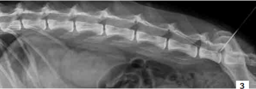 Photo 3 - Cliché radiographique de profil de la colonne lombaire d’un chien.
