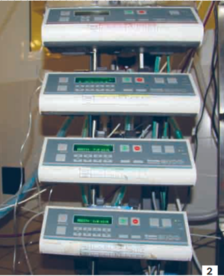 Photo 2 - Association de pousse-seringues permettant un protocole d’analgésie multimodale.