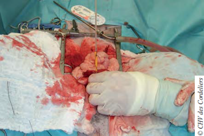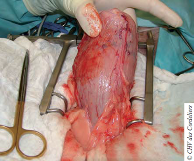 Photo 5 : Extériorisation de la vessie.