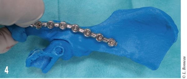 Figure 4 – utilisation peropératoire du modèle 3D du côté sain du bassin pour modeler la plaque sur une fracture complexe.