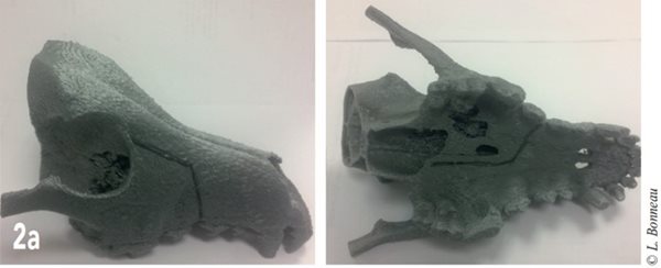La réalisation d’une impression 3D repose sur la transformation d’images obtenues par imagerie en coupe en un volume tridimensionnel. Le modèle 3D ainsi créé permet de se représenter avec précision l’anatomie de l’animal en taille réelle (Fig. 1) 1.