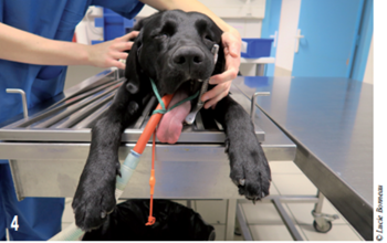 Figure 4 : Le chien est placé en décubitus sternal, le pas d'âne est en place.