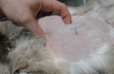 Photo 1. Distension abdominale (photo réalisée après tonte).
